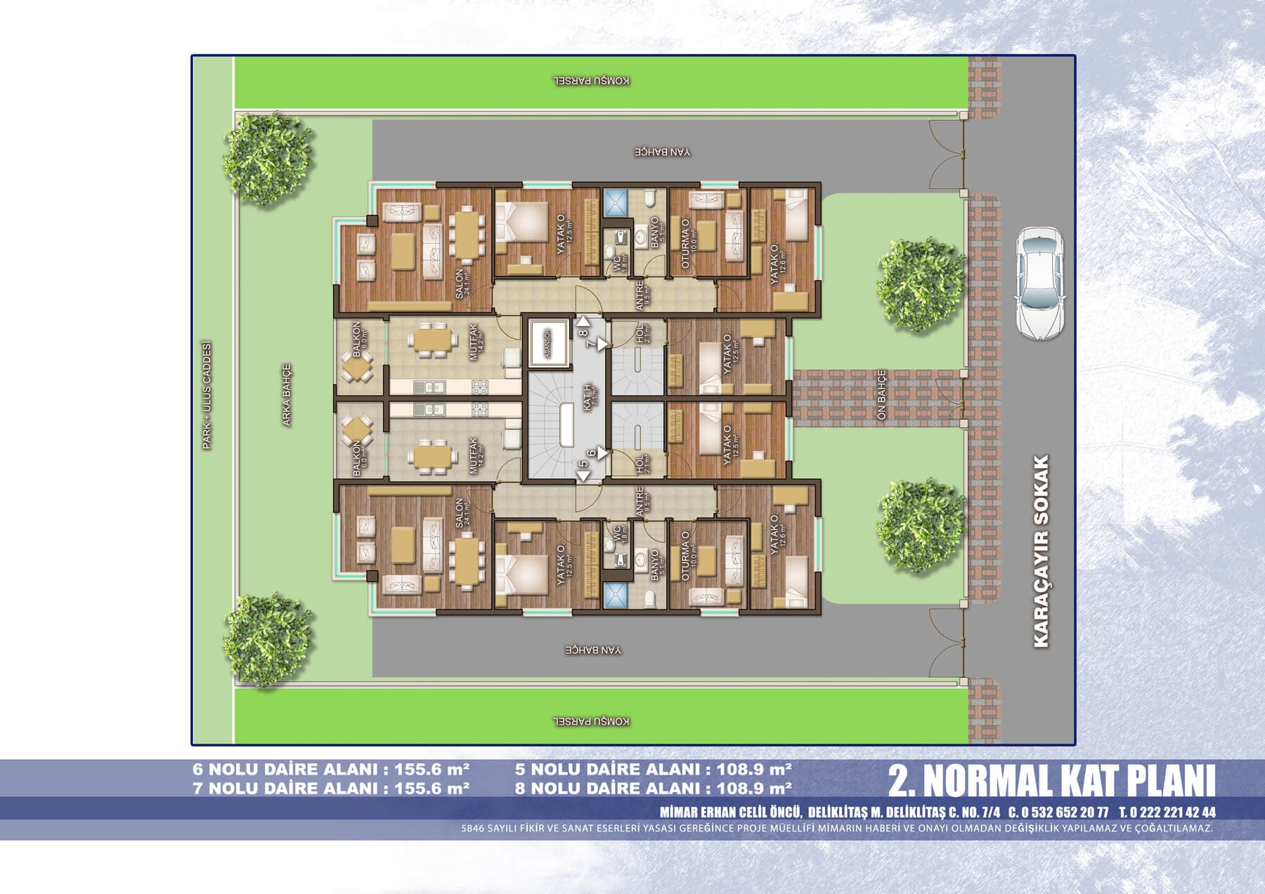 Gökmeydan Mahallesi Karaçayır Sokak No:13 te bulunan projemiz 8 daire olarak tamamlanmış ve sahiplerine teslim edilmiştir.
