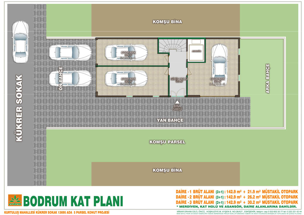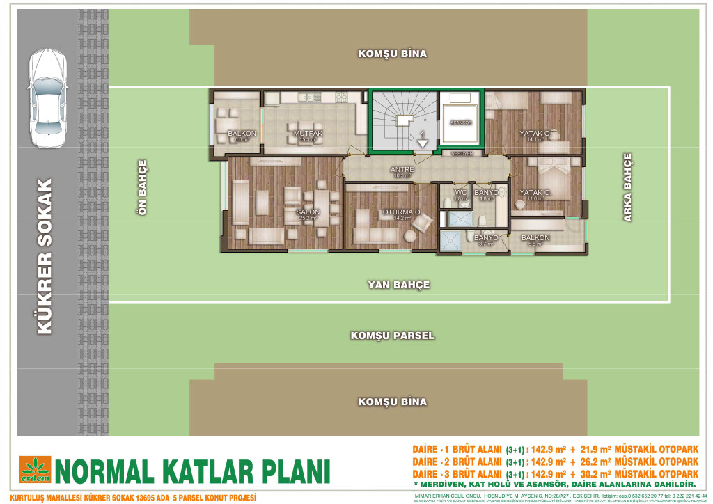 Daire bürüt alanı 142.9 m²